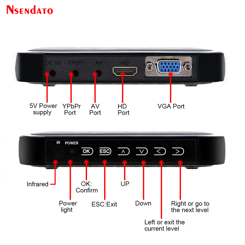 1080P HD Media Video player Center Surpport mkv H.264 with VGA HD USB AV MMC/SD Port with Remote Control