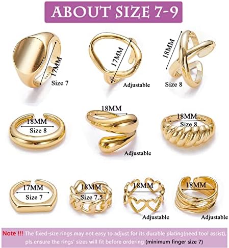 You will get a variety of fashion Chunky Dome style 10 rings set, classic ring, Braided Twisted ring, Signet ring, Geometric ring, and Personalized Cross ring, love heart adjustable ring, etc. You Can Wear Them Individually, used as a stacking ring Or Any Way You Like. Rings set can create a variety of fashion experience, show your unique charm, make you seem Elegant and Mysterious.