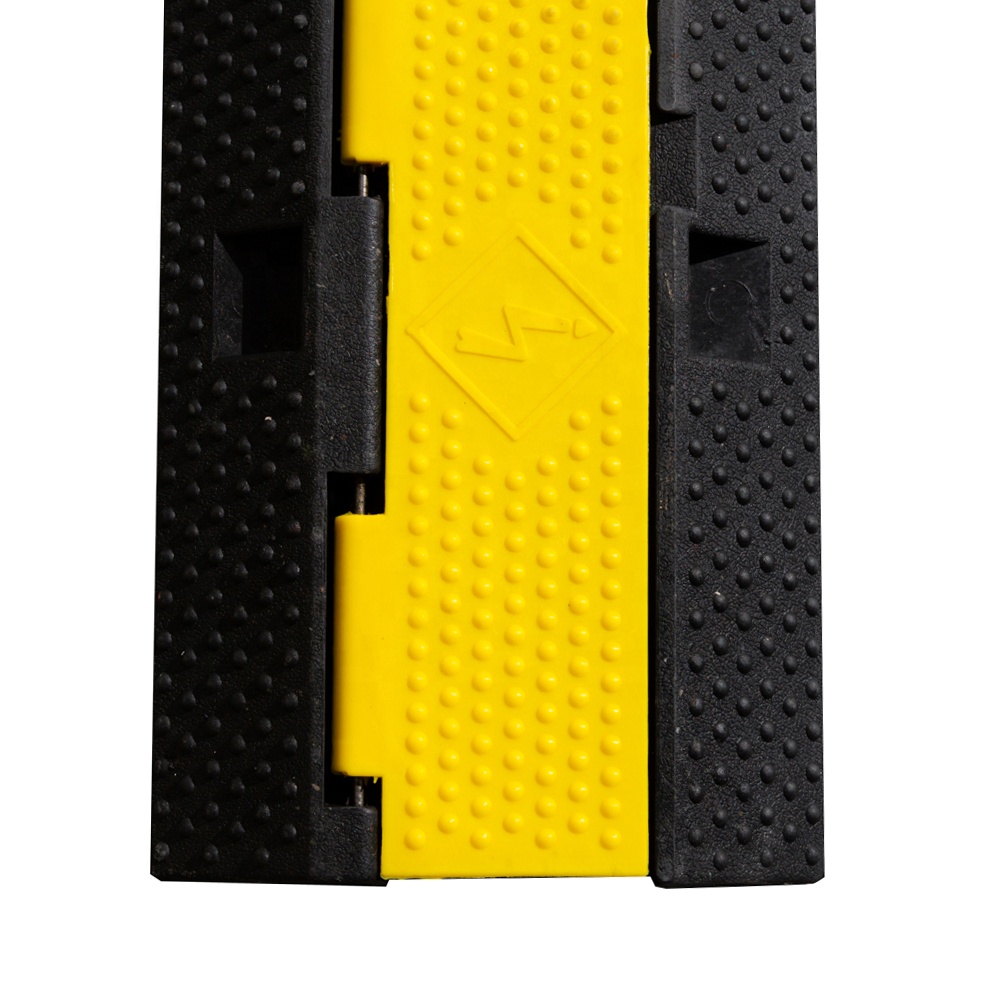 It is usually being placing at the passage of the factory, parking lot, exhibition centre, performing-arts centre, stadium or concerts, especially those places which cars often pass by. This cable protector can easily hide those cables and prevent them being exposed outside, meanwhile, it protects cables from being crashed or pressed. It's incredible insulativity can withstand 2500V voltage. The bright yellow safety lid with warning symbols can easily attract people's attention.