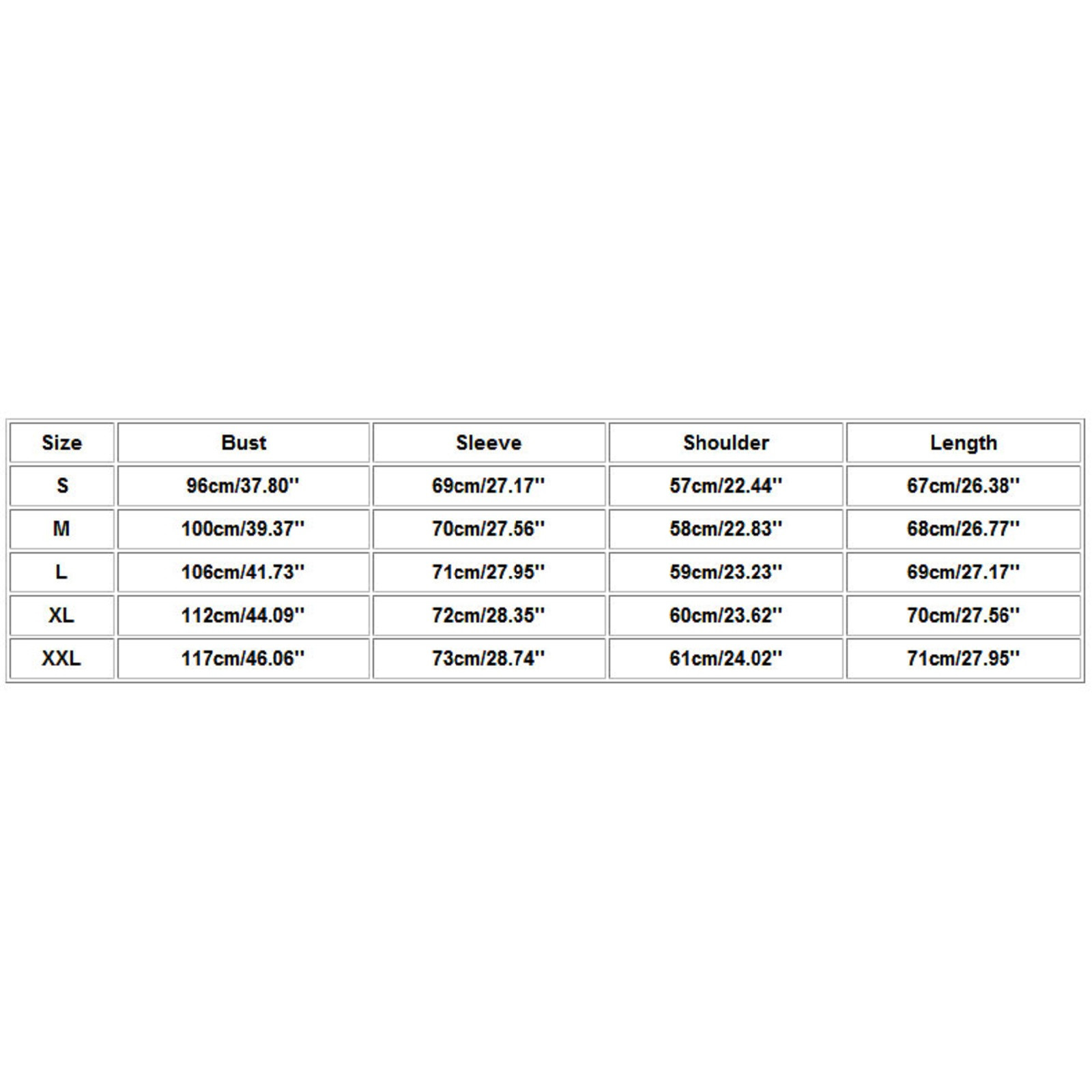 Size Bust Sleeve Shoulder Length