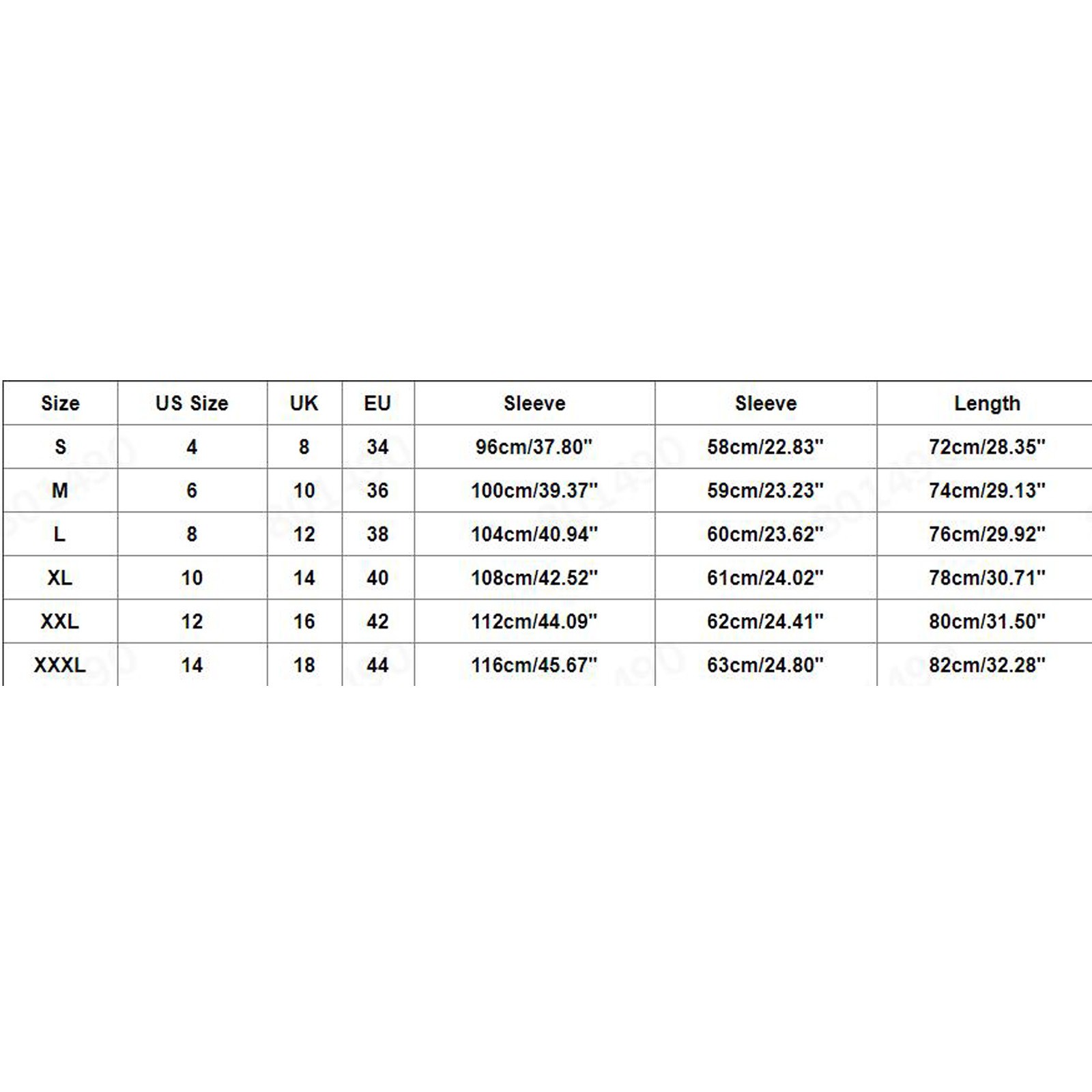 Size US Size UK EU Sleeve Sleeve Length