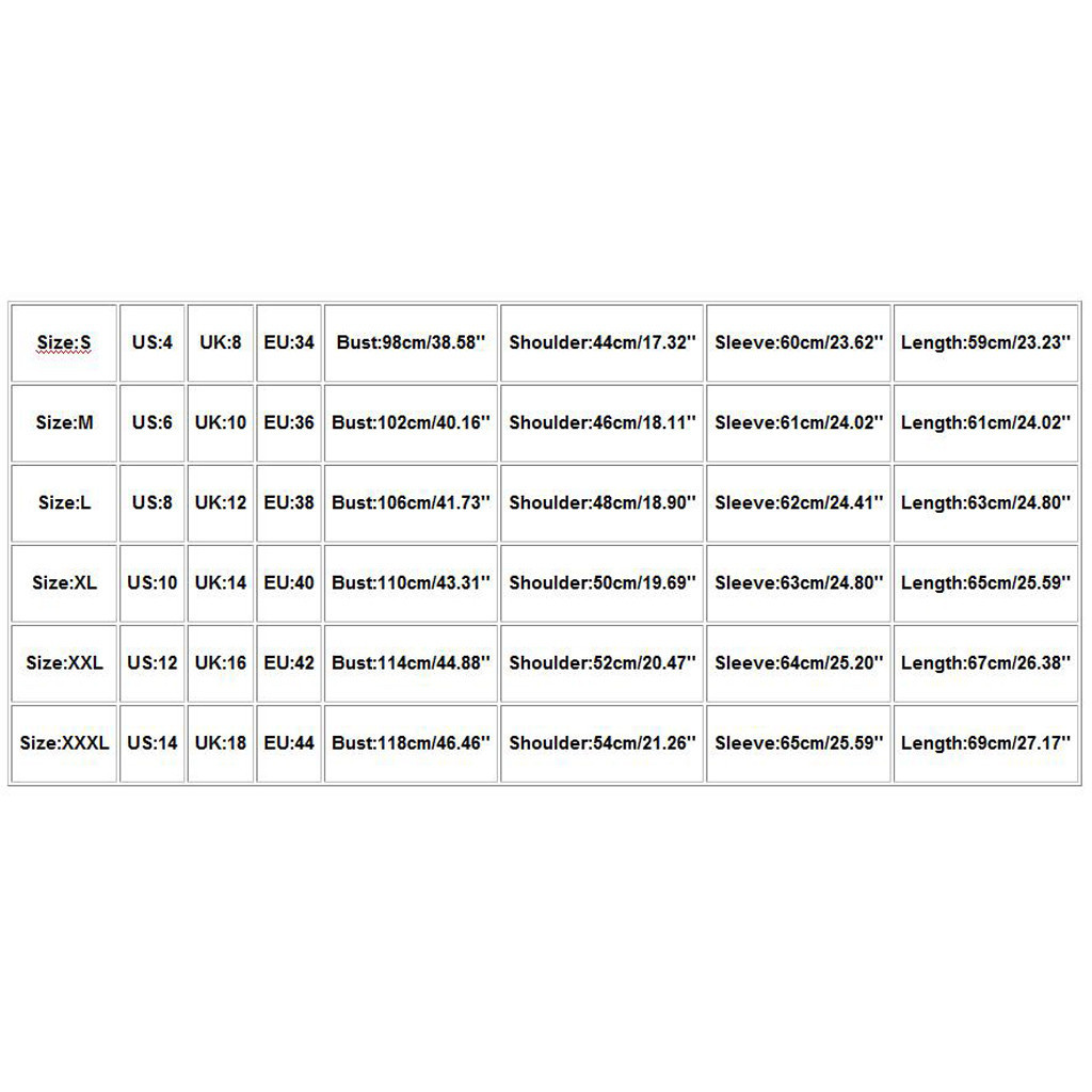 Size US UK EU Bust Shoulder Sleeve Length