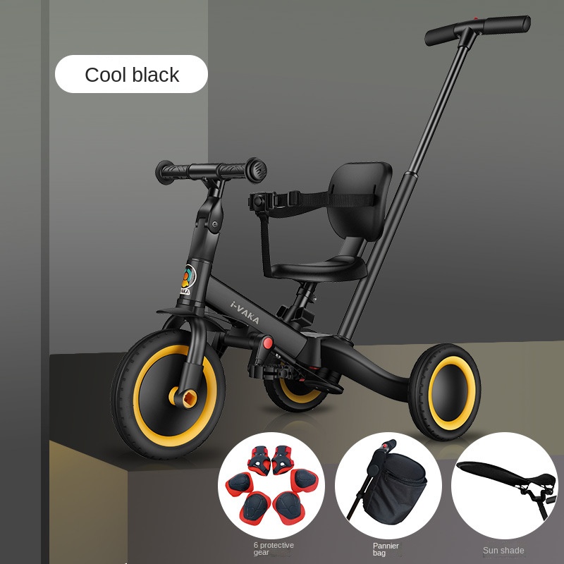 ✔️ Option name (E) : 1 Pc x children's tricycle + 1 Pc x Backrest + 1 Pc x push handle + 1 Pc x storage bag + 6 Pcs x Protective gear + 1 Pc x awning