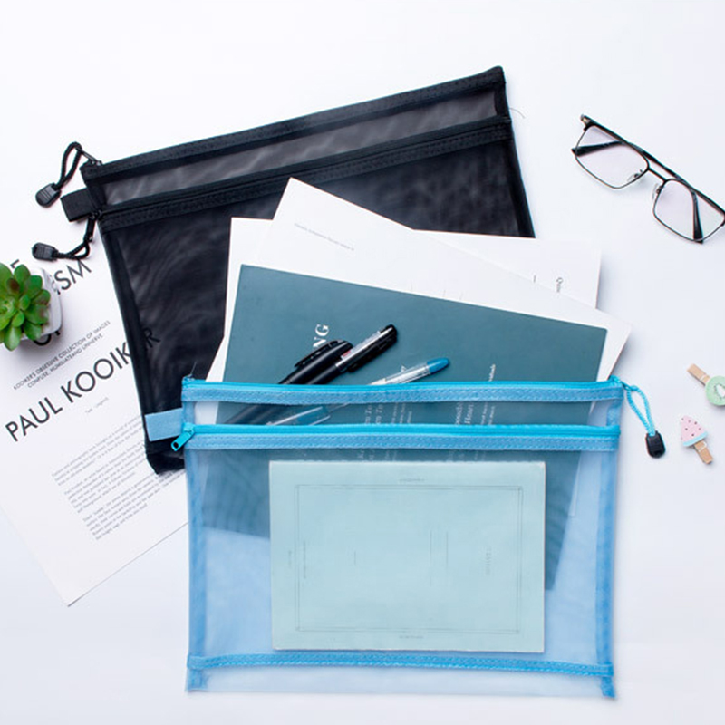 5pcs Double Layer Mesh Document Bag A4 A5 A6 File Folder Bag Pen Organizer Stationery Storage Cosmetic Bag Makeup Storage