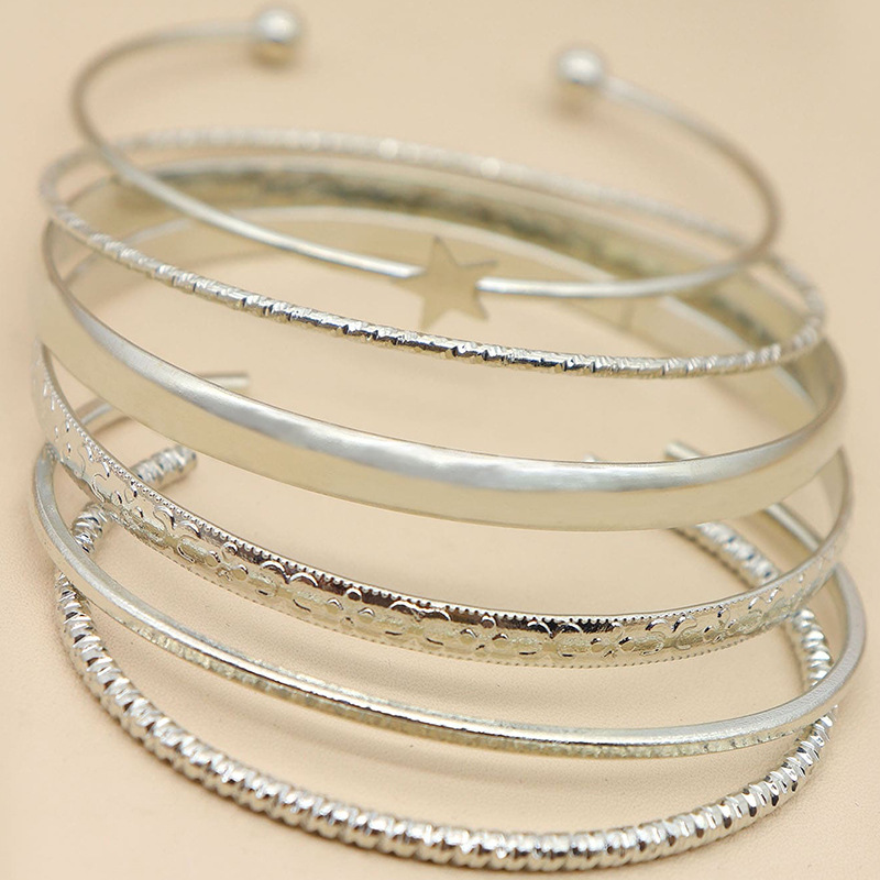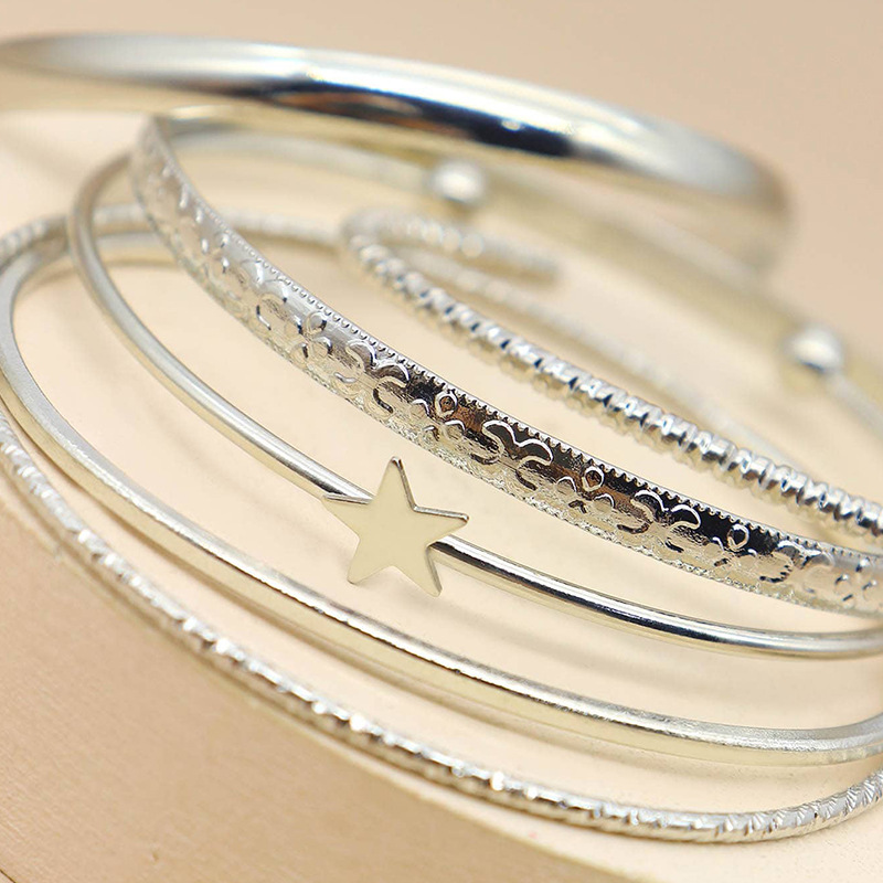 6PCS/SET Bracelet Fashion Opening Bracelets for Women with Star Charm Bracelets Jewelry Accessories Sets