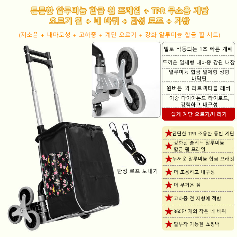 75kg All Terrain Stair Climbing Cart Hand Truck with Bungee Cord Portable Folding Trolley for Upstairs Cargo with Bag