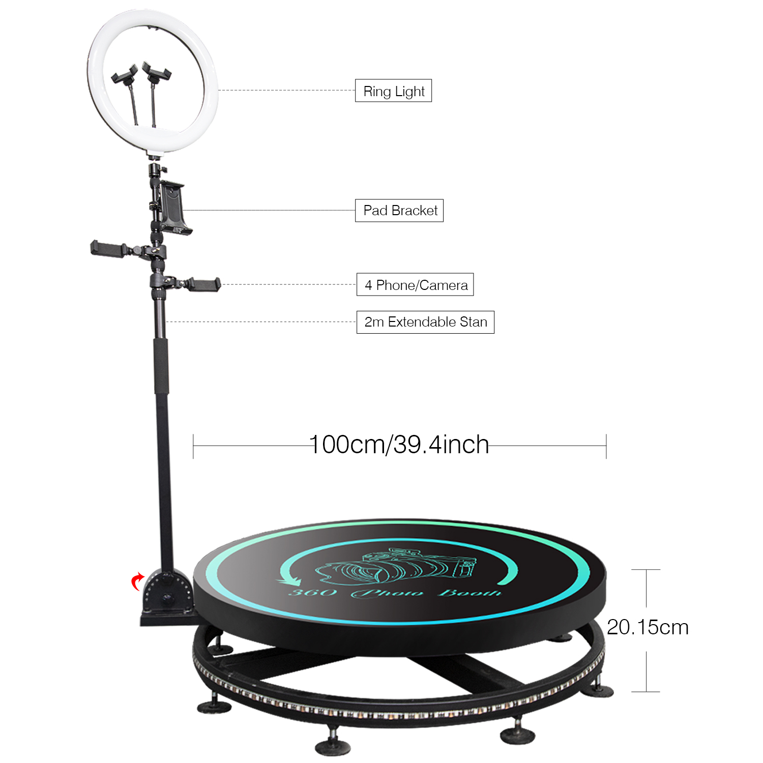 80 100 115Cm Party Slow Rotating Spinning Camera 360 Degree Pobooth Automatic Video 360 Po Booth