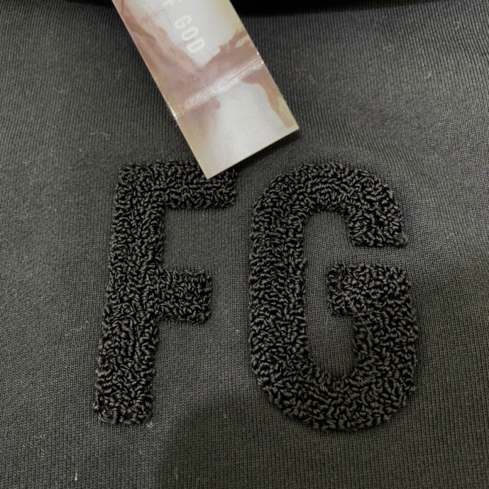 A+ Quality Fear of God Chenille logo Initial Hoodie Black