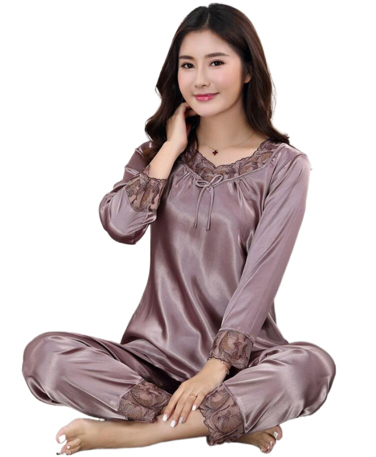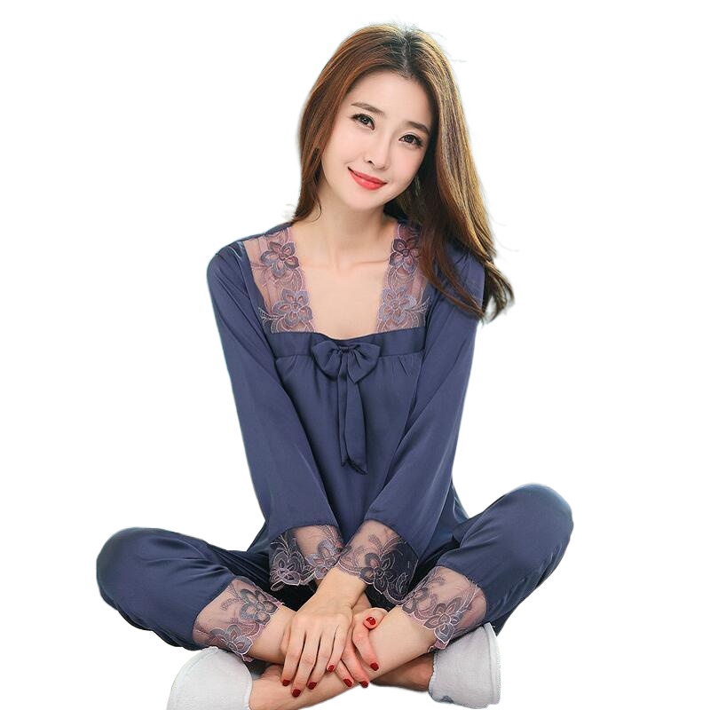 A2/7022-10 Ice silk pajamas women's spring and autumn long-sleeved suit printed home wear two-piece sleepwear791B-1