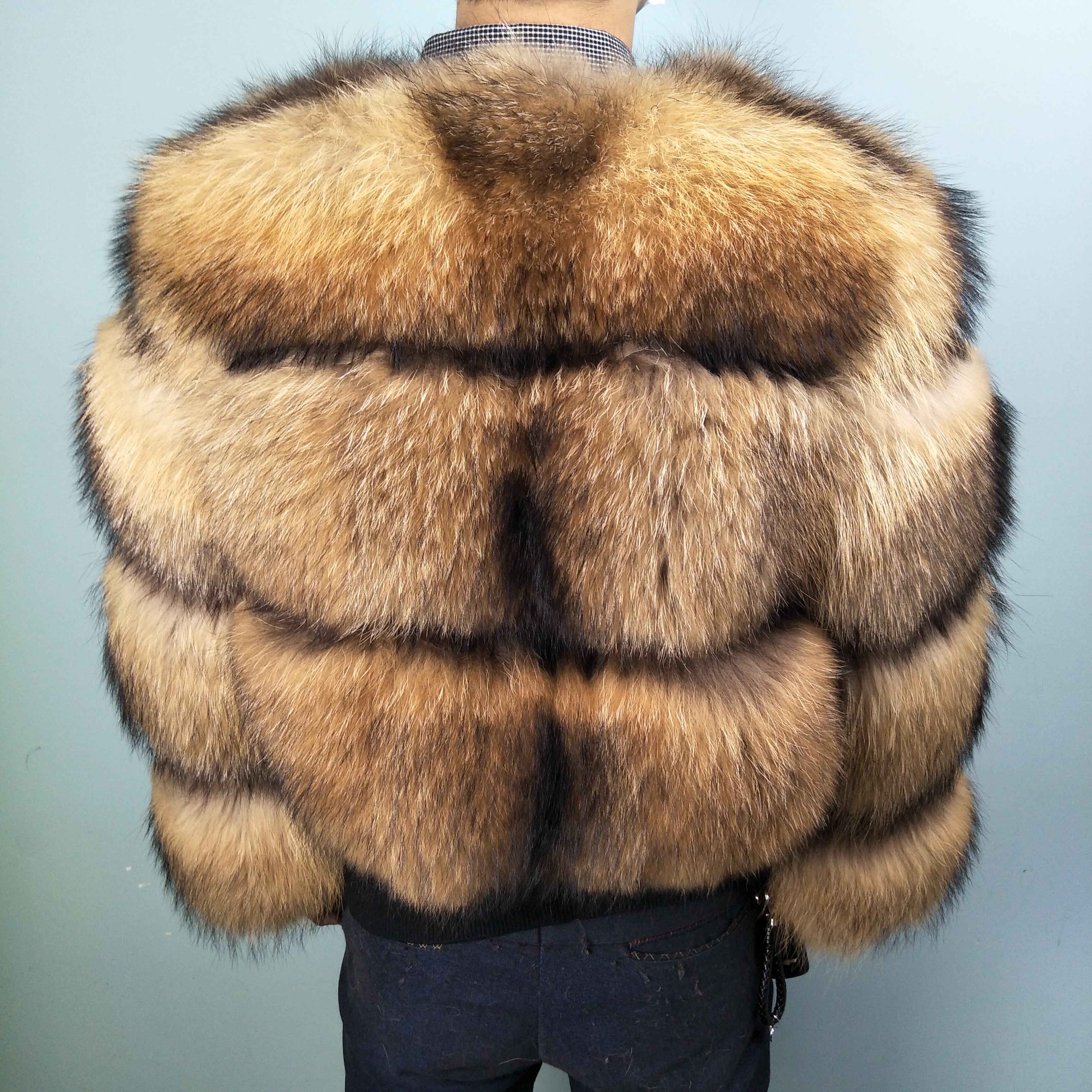Arrival Real Raccon Dog Fur Coat Full Pelt O-Neck Thicken 55cm Short Warm Striped Design Women Raccon Fur Winter Jocket