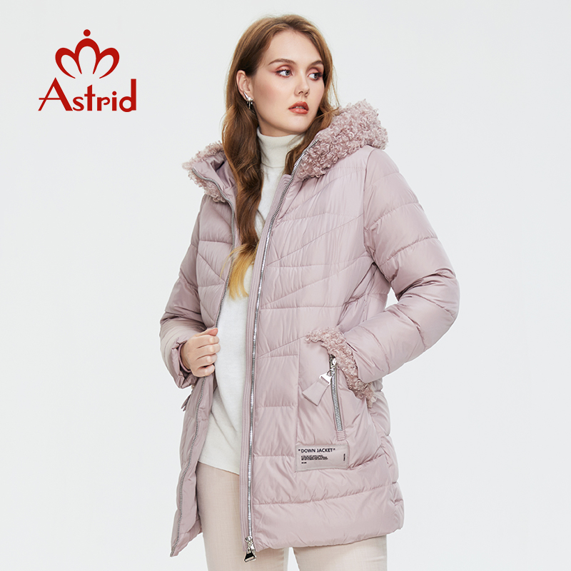 Astrid Winter Women Mid-length Coat Fur collar down jacket female parka Hooded plus size parkas Women's coat 9530