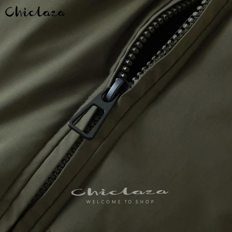 Autumn Winter Thick Warm Women's Vintage Green Parkas Coat Casual Pockets Solid Loose Jacket Basic Cotton Outwear Female