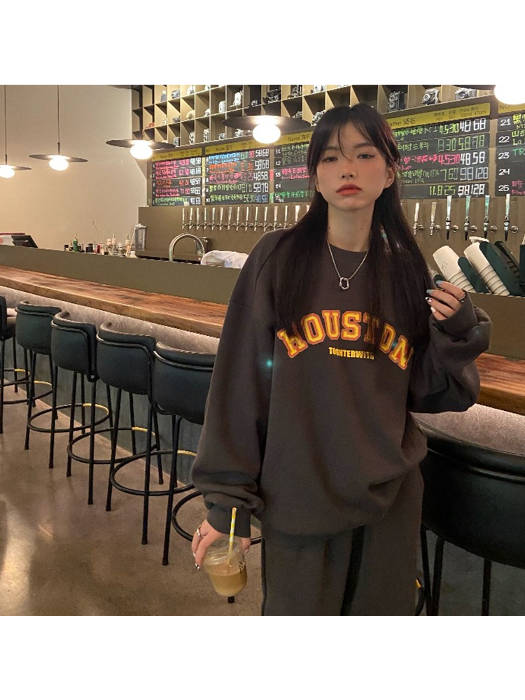 Autumn Winter Women American Vintage Print Pullovers O-Neck Hoodie Sweatshirt Streetwear Oversize Loose Casual BF Style New