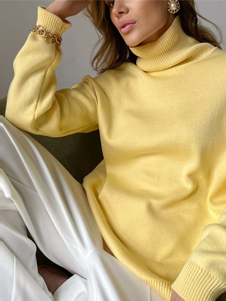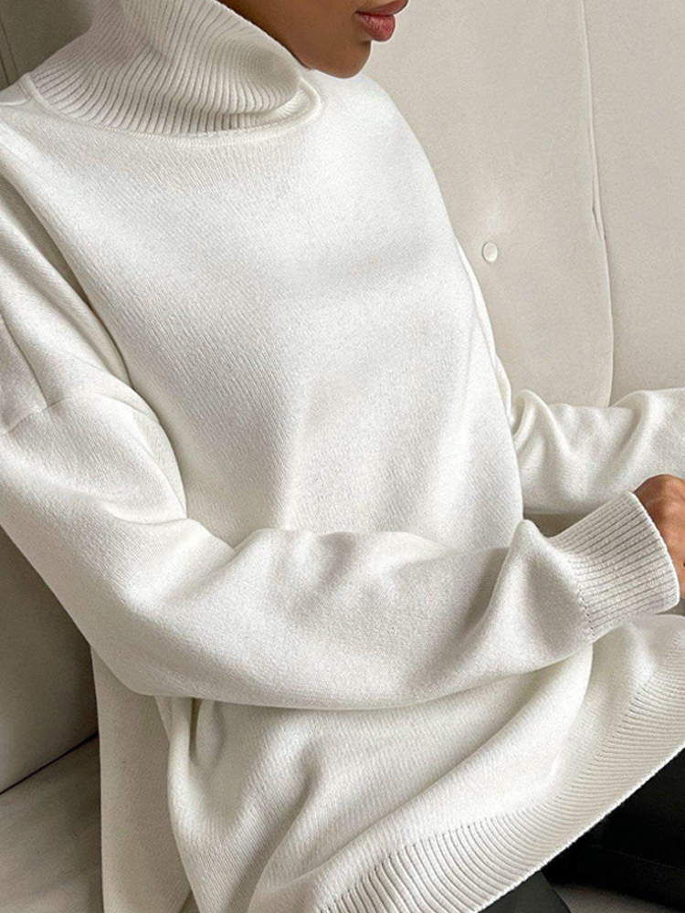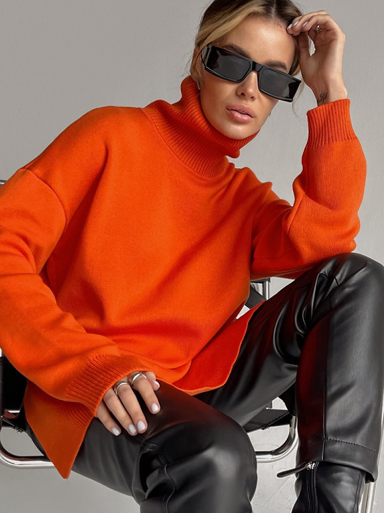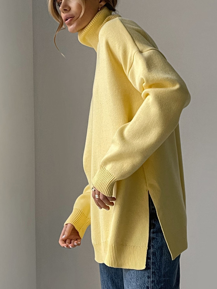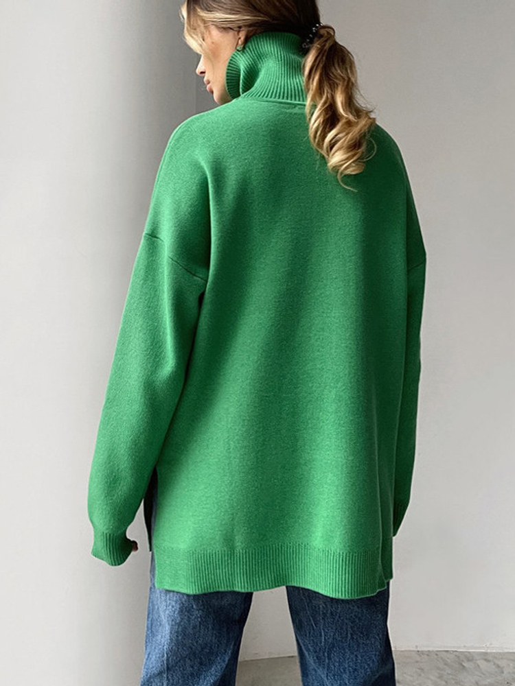 Autumn Women's Loose Turtleneck Sweater Solid Long Sleeve Split Knit Sweaters Female Casual Simple Lady Clothes