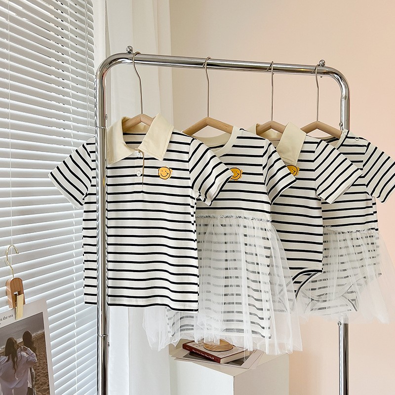 Baby kids Parent-child Summer Clothes Family matches Mother Dad Children's Clothing Striped Smiley Family Look