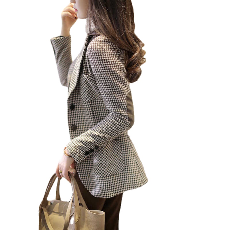 Styles2 : houndstooth All-match Temperament Top Single Breasted