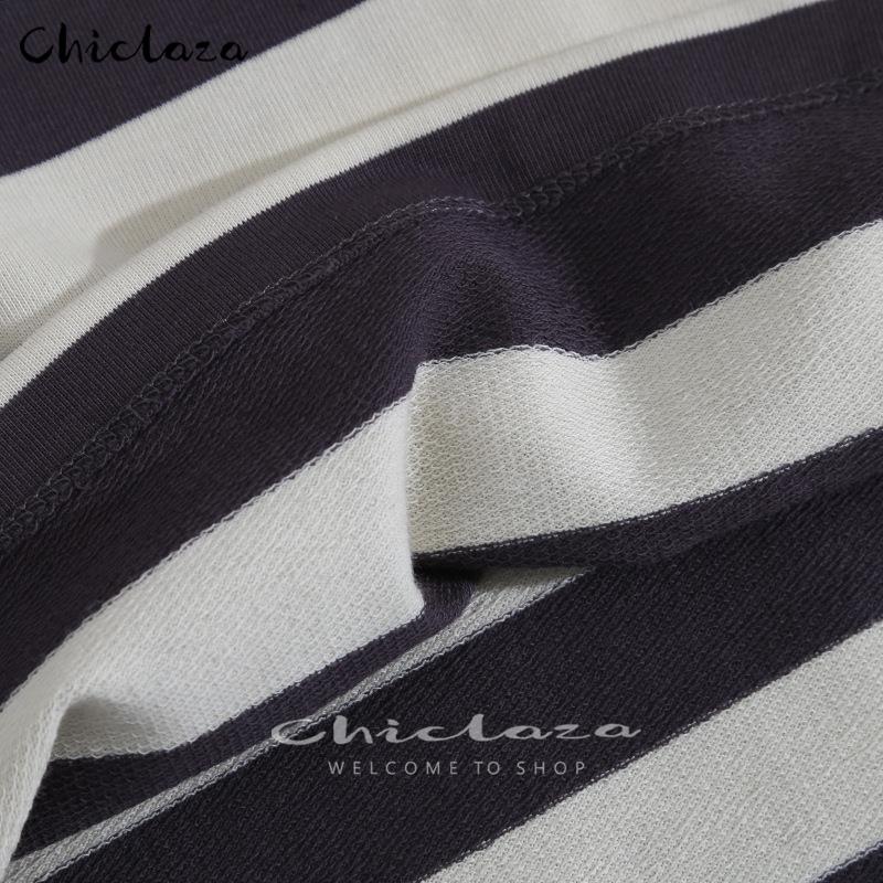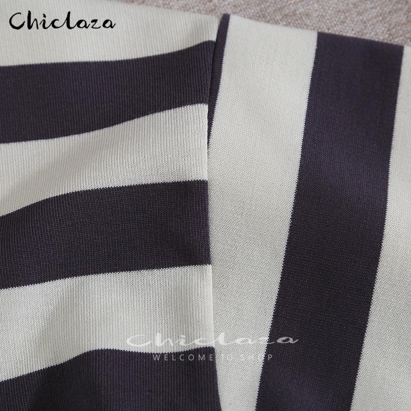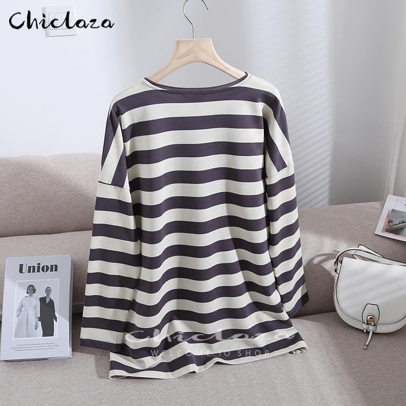 CHICLAZA Women Spring Autumn Vintage Striped Long Sleeve O-Neck Pullovers Sweatshirt Female Loose Tops