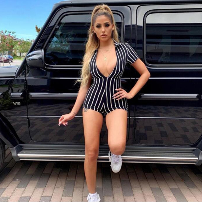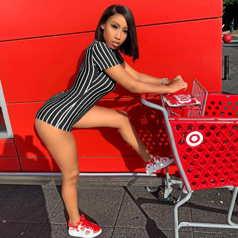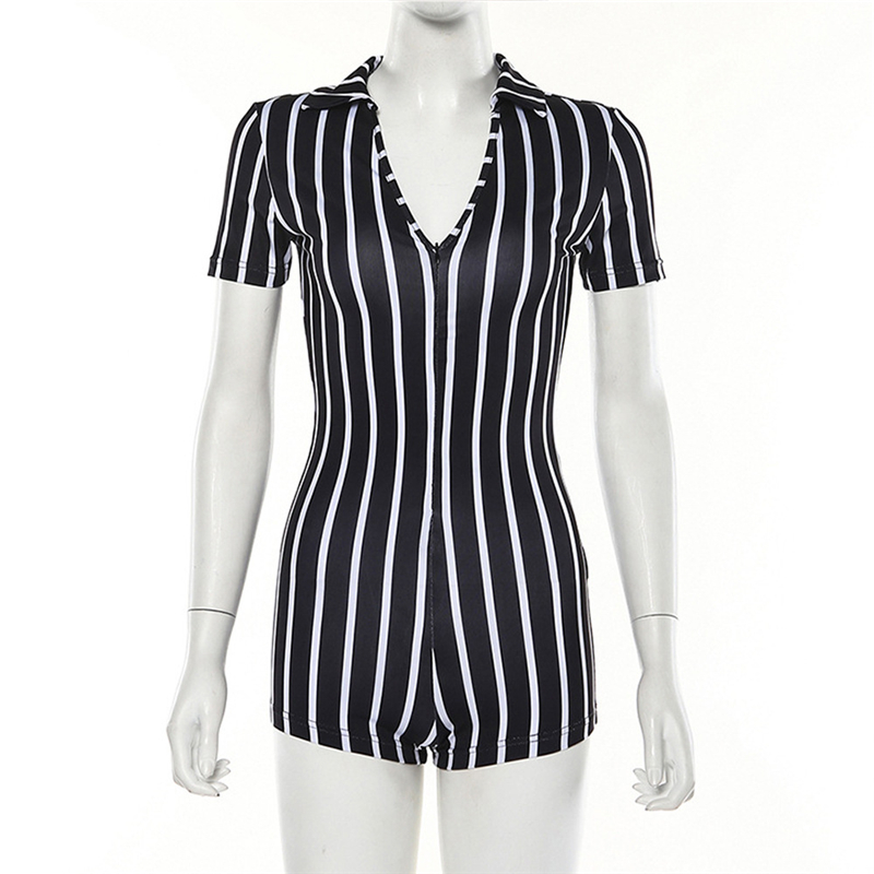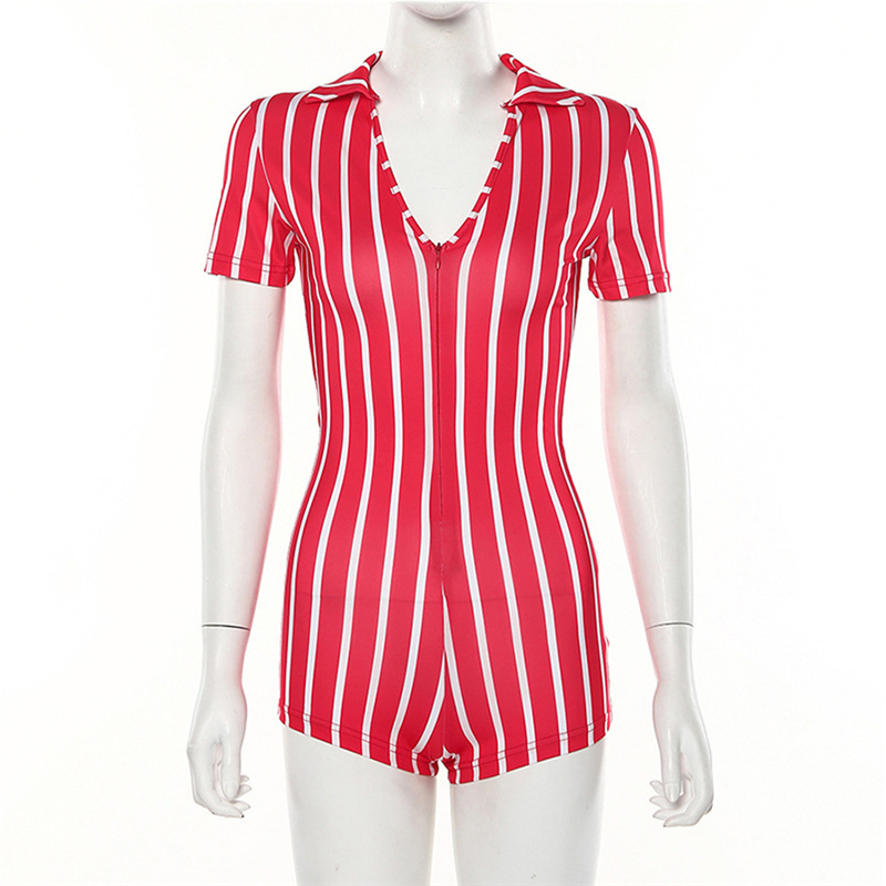 Casual Street Rompers Women Sleepwear Black White Red Striped Short Sleeve Shorts Jumpsuit Sexy Onesie For Adult Female