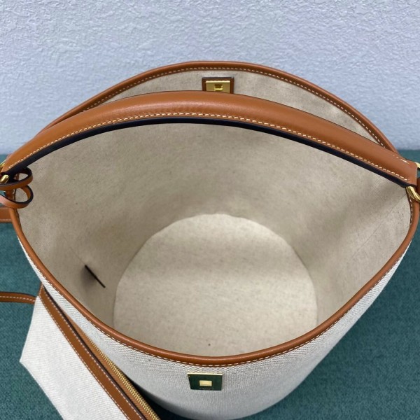 Aside from the now-iconic Celine 16 turnlock, the Bucket bares little resemblance to the original structured shape, allowing this new silhouette to speak to consumers who may not be original fans of the 16 line. Combining the elegance of calfskin and the modernity of textile, Celine’s 16 bucket bag is a resolutely contemporary creation.