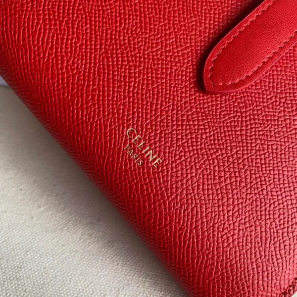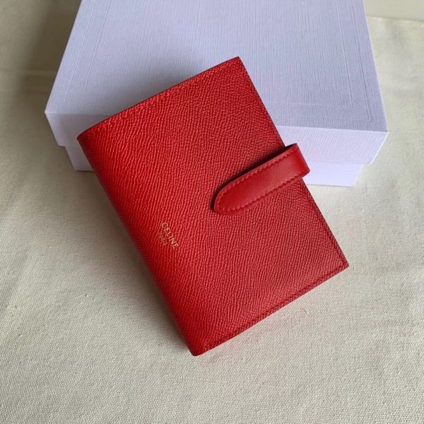 Celine Medium Strap Wallet in Red Grained Calfskin