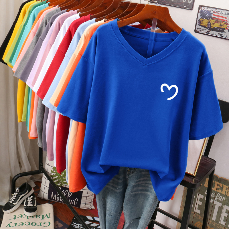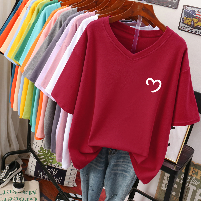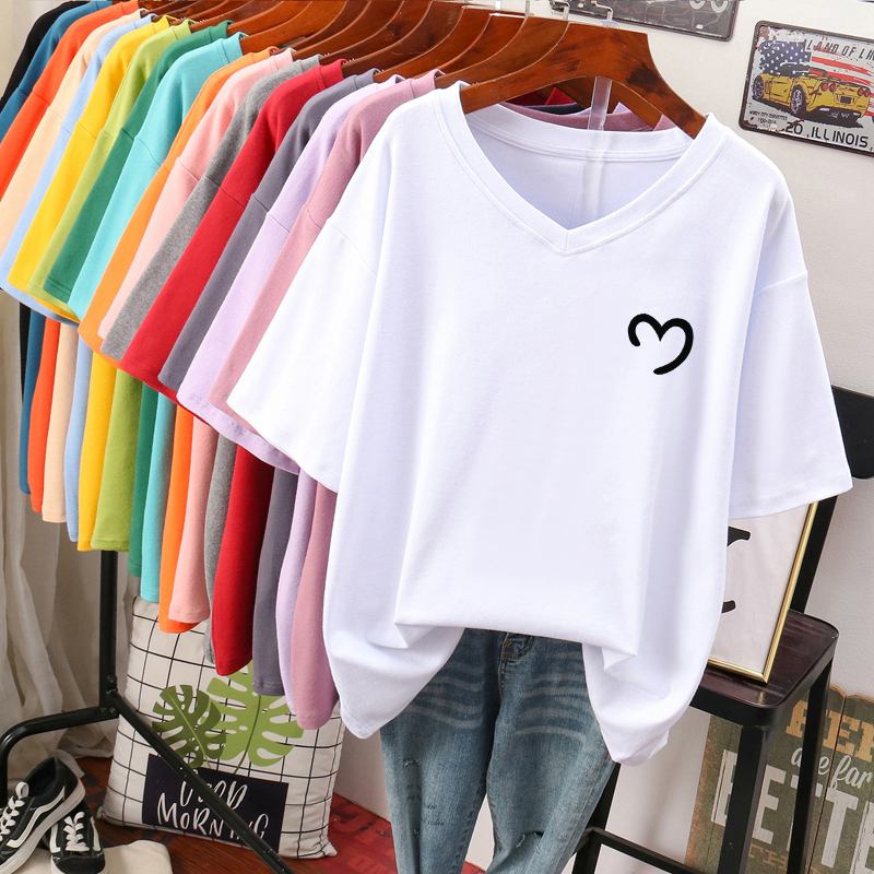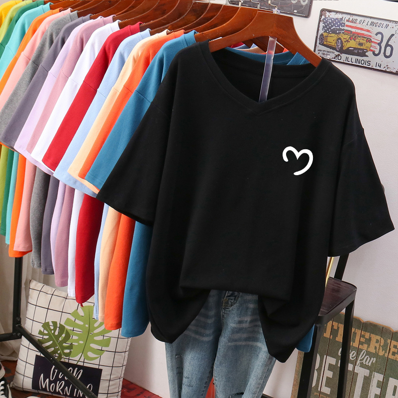 DAYIFUN L-6XL T Shirt Plus Size Tshirt Short Sleeve Women Top Summer Cartoon Print Casual V Neck Oversized T Shirts