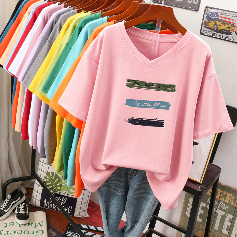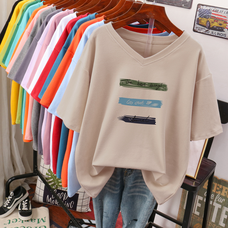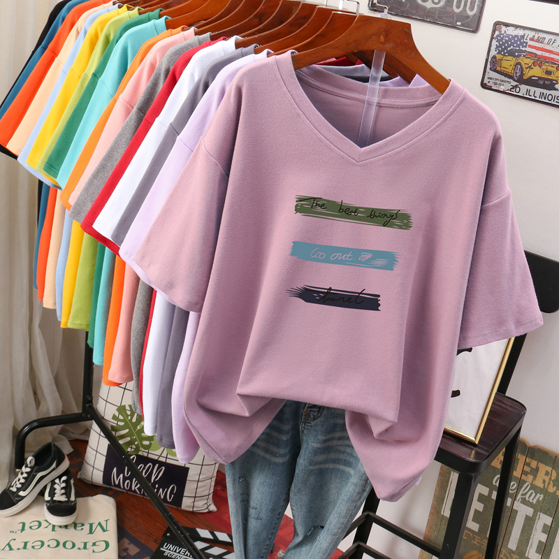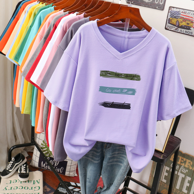 DAYIFUN Plus Size T Shirt L-6XL Tshirt Short Sleeve Women Summer Print Big Size Casual V Neck Oversized T Shirts