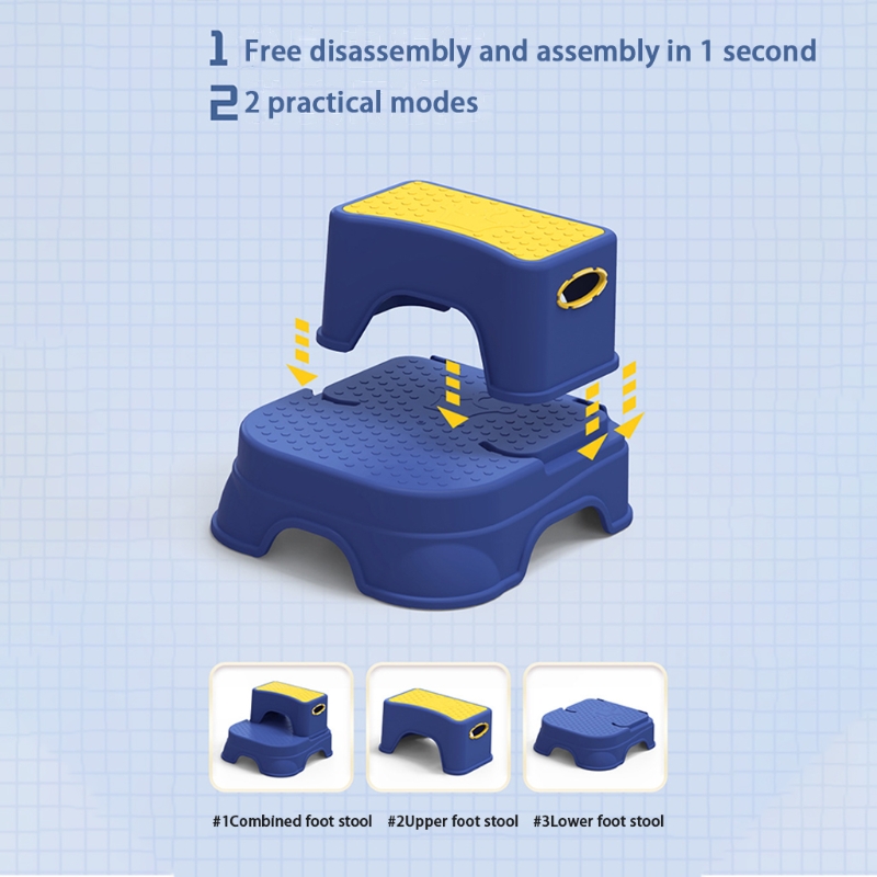 The toddler step stool can be easily disassembled and installed. After being disassembled, it can be used as 2 small stools, each with 4 thick non-slip rubber feet. Disassembling the toddler stool can help you save space in the bathroom.