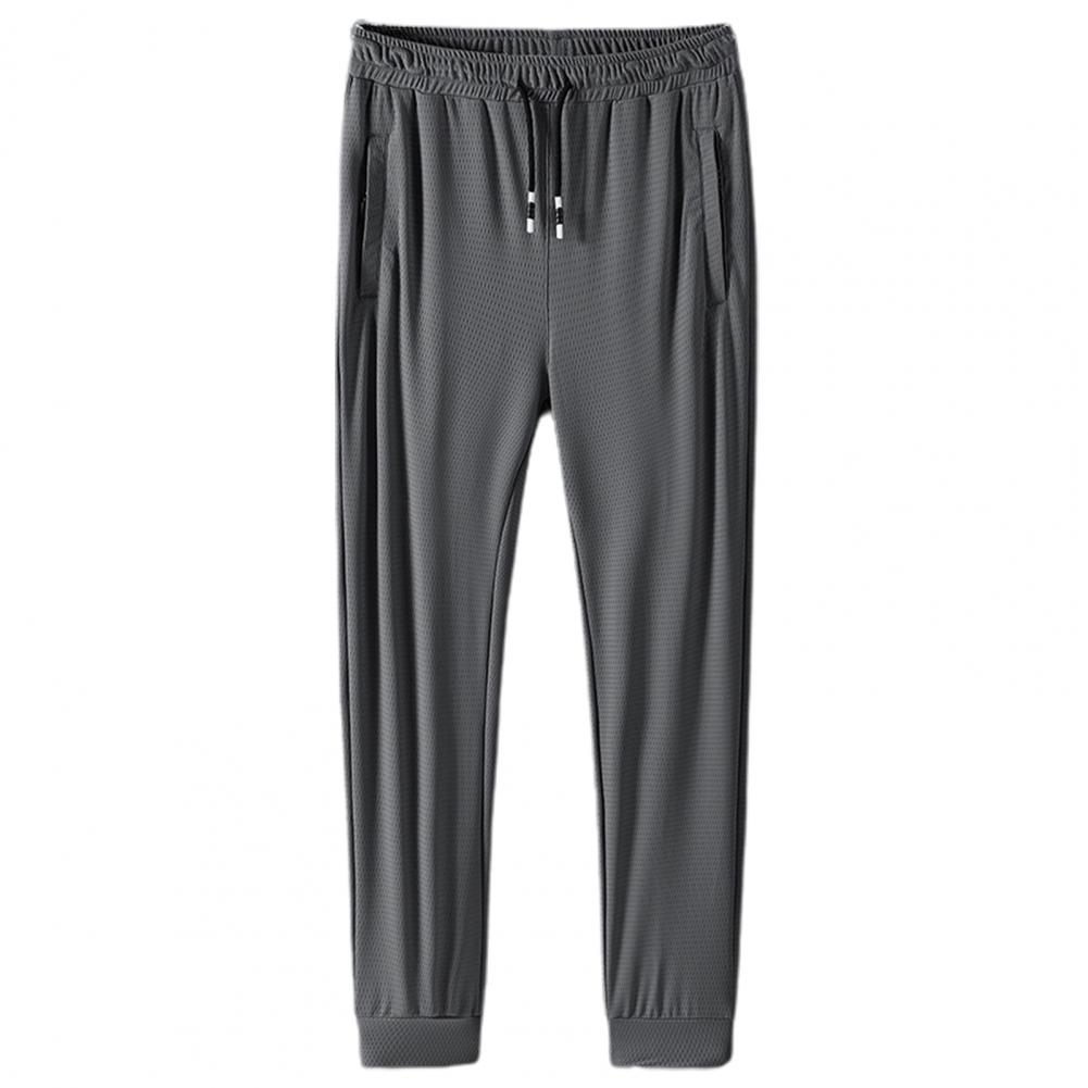 Elastic Waist Drawstring Zipper Pockets Jogger Pants Breathable Mesh Solid Color Long Pants Male Clothing