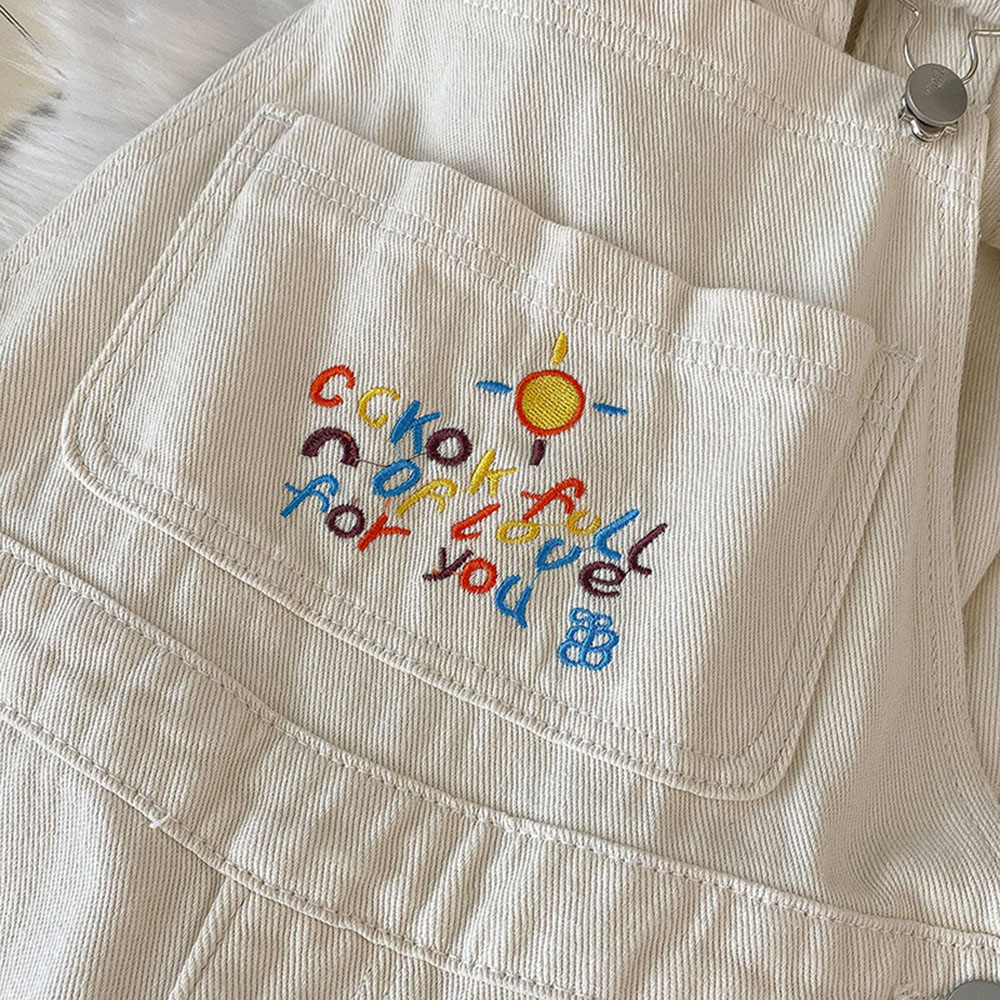 Embroidery White Denim Overalls Women Straps Pants High Waist Wide Leg Pants Casual Loose Female Jumpsuit Jeans New