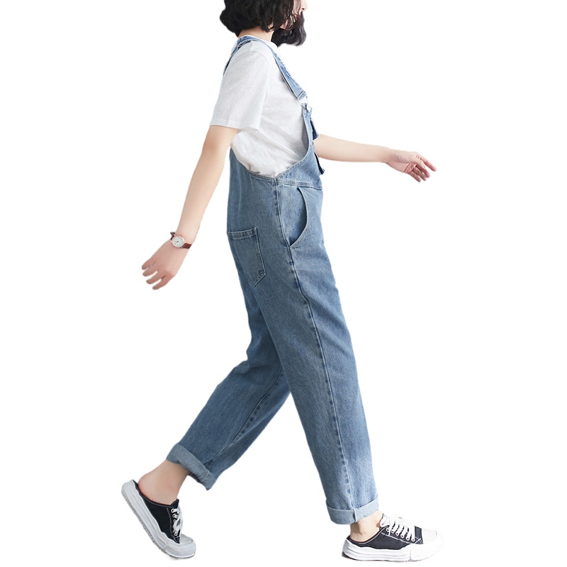 Fat Sister Denim Overalls Women's pants spring and autumn jeans pure cotton Large size Loose slimming jumpsuit