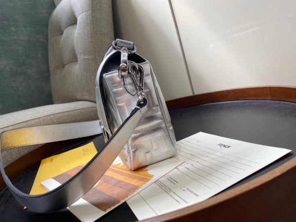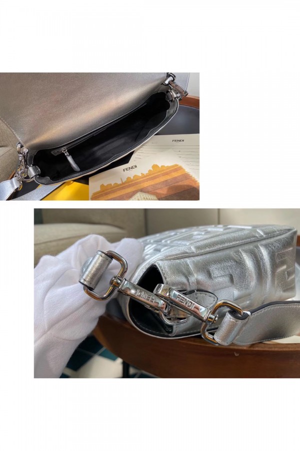 Fendi Baguette Medium Bag In Silver Lambskin With FF Motif