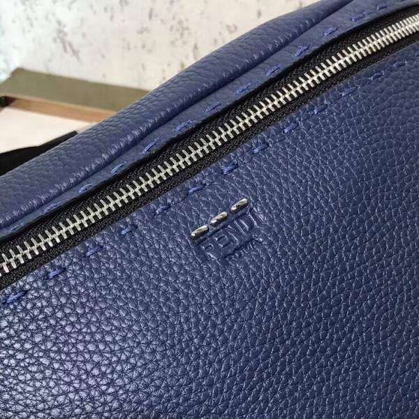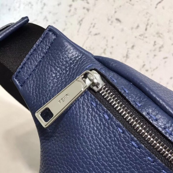 This Fendi Belt bag is made of blue Romano leather. Finished with “Metal Stitch” hand-sewn stitching, the bag attaches to the waist with the buckle belt strap or functions.