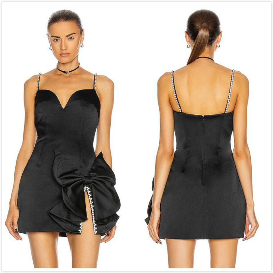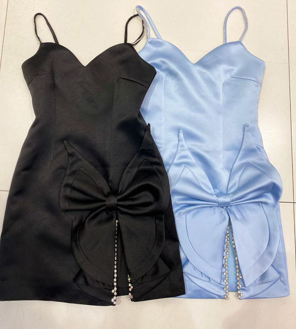 Free Shipping Summer Women's Chic Diamond Dress Sexy Spaghetti Strap Flower Decorated Satin Vestido Club Party Mini Dresses