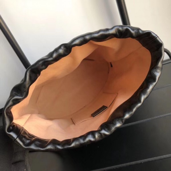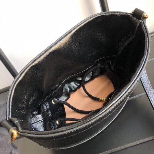 Inspired by archival designs, Gucci 1955 Horsebit bucket bag unifies the original details first introduced over six decades ago with a modern spirit, highlighting the Horsebit. Part of Gucci’s genetic code, the double ring and bar design has been established as one of the most distinctive elements among the House symbols borrowed from the equestrian world. The hardware is paired with a contemporary mix of materials, combining textured and soft black leather to create a unique tonal effect.