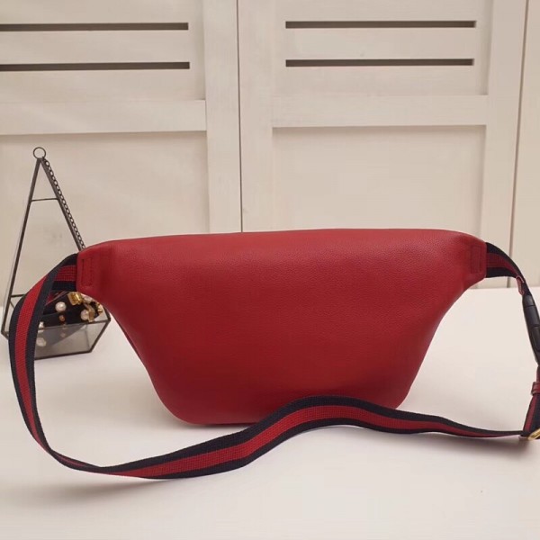 Inspired by vintage prints from the eighties, the Gucci logo is brought to the forefront. The retro-style motif is presented on the front of a belt bag in supple grained leather.