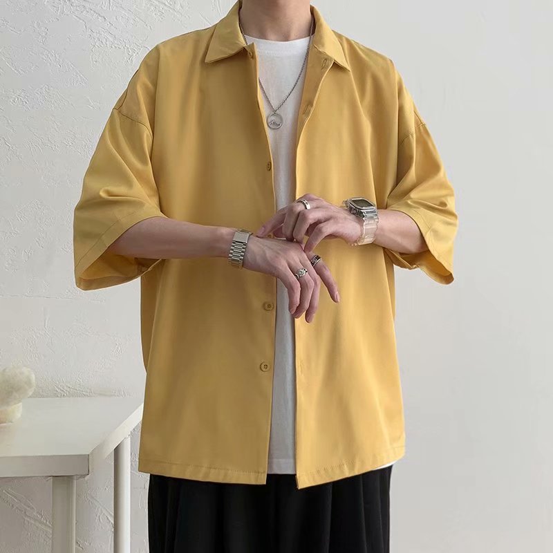 Half Sleeve Shirts Men Solid Color Loose Oversize S-3XL Harajuku All-match Simple Summer Draped High Style Casual