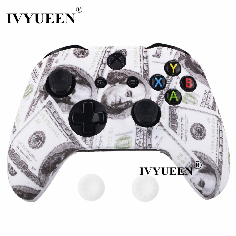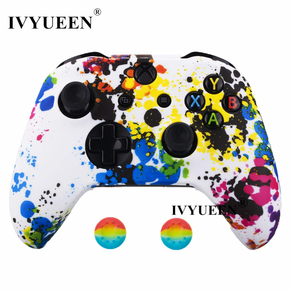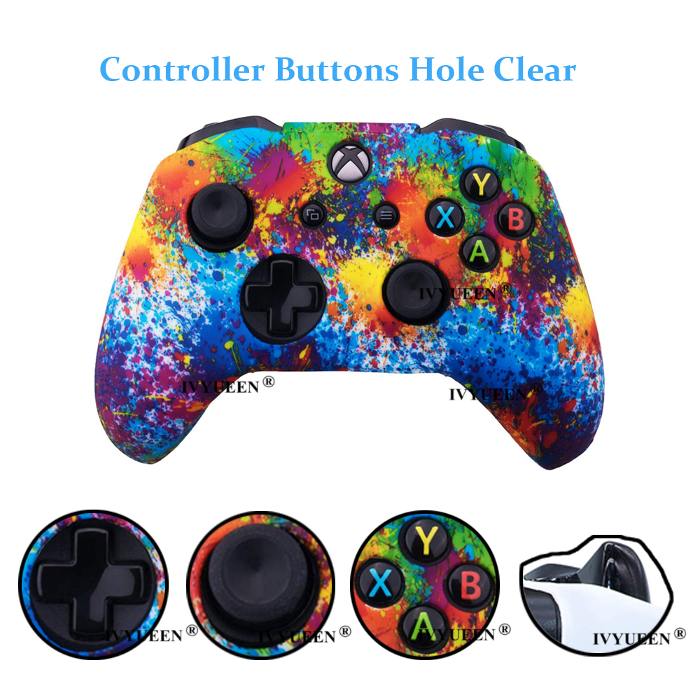 IVYUEEN Silicone Protective Skin Case for XBox One X S Controller Protector Water Transfer Printing Camouflage Cover Grips Caps