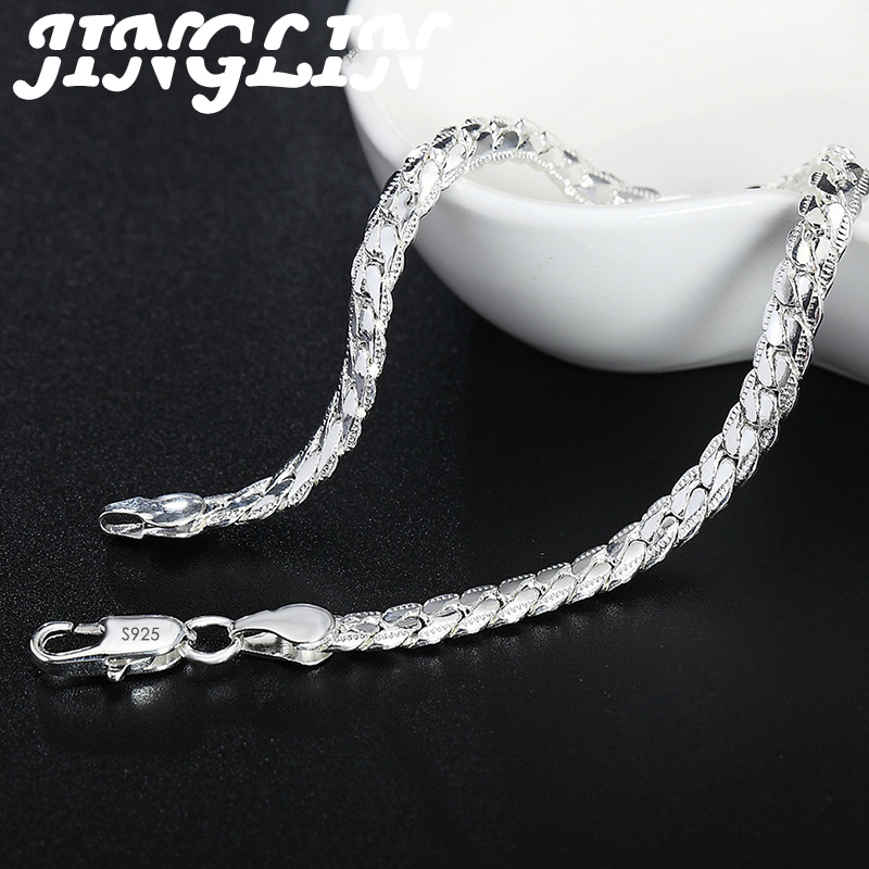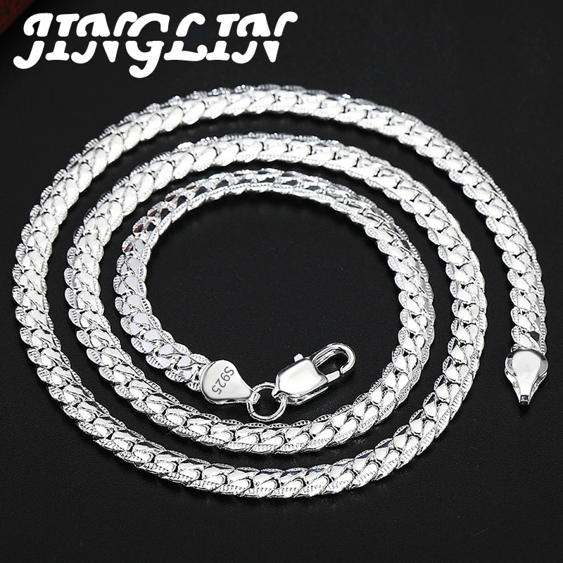 JINGLIN 925 Sterling Silver 6mm Full Sideways Necklace 8/18/20/22/24 Inch Chain For Woman Men Fashion Wedding Engagement Jewelry