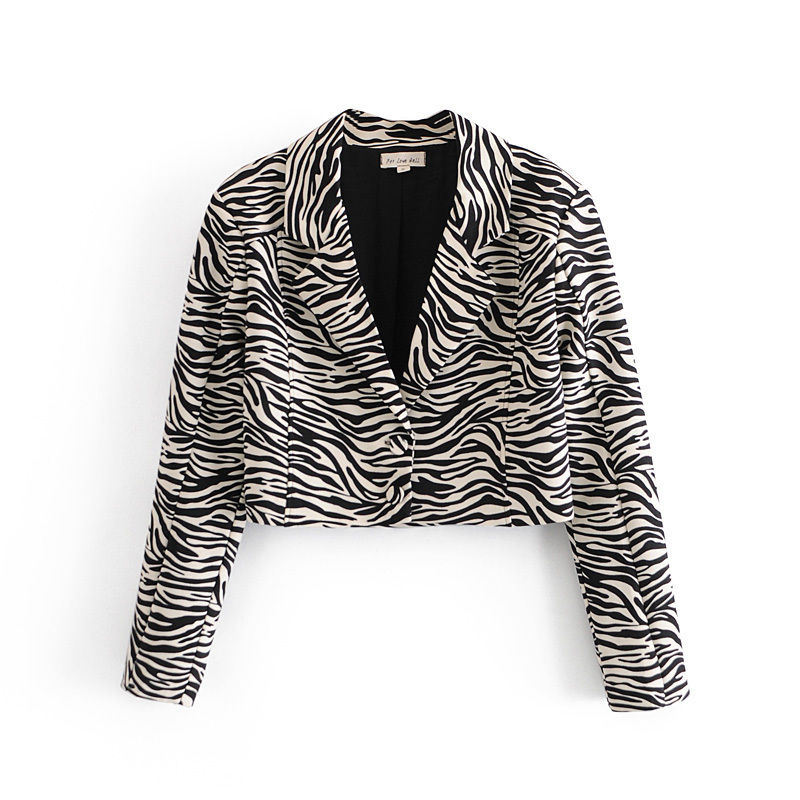 Jacquard Skirt Suits Women Elegant Office Black White Zebra Pattern Long Sleeve Cropped Blazer + High Waist Mini Skirts 2-piece