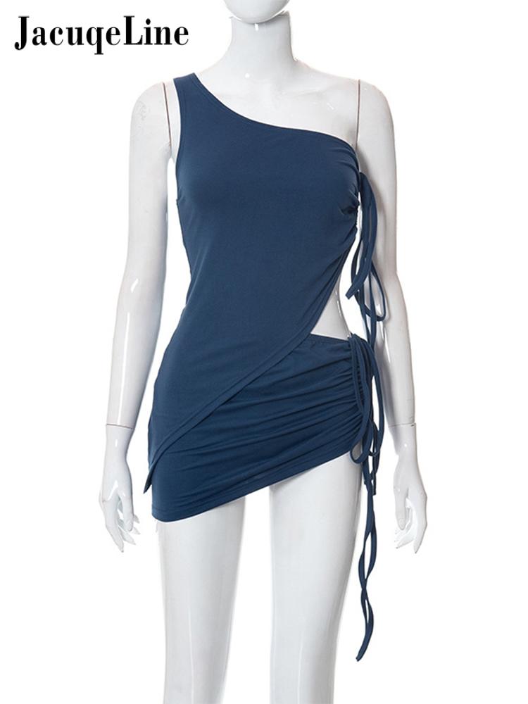 Jacqueline Drawstring Dress Summer Sets Womens Outfits Sexy One Shoulder Crop Top and Mini Skirts Sets Co-Ord Club Party