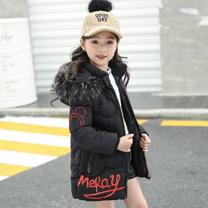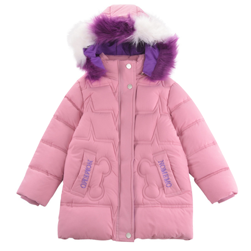 LANBENA Children's winter down jacket able children's medium and long printed wool collar hooded cotton