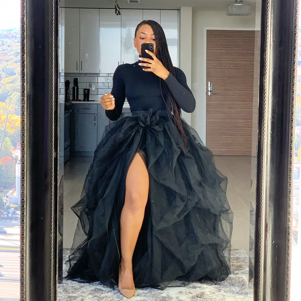 Liva Girl Casual High Waist Elastic Mesh Puffy Women's Plus Size Irregular Ball Gown Lady Tulle Skirt faldas mujer moda 5XL