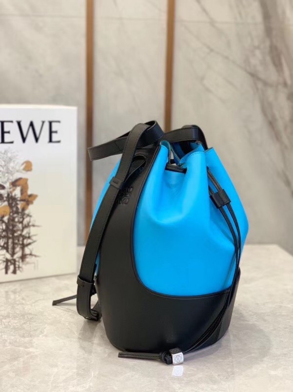 Loewe Medium Balloon Bucket Bag In Blue/Black Calfskin