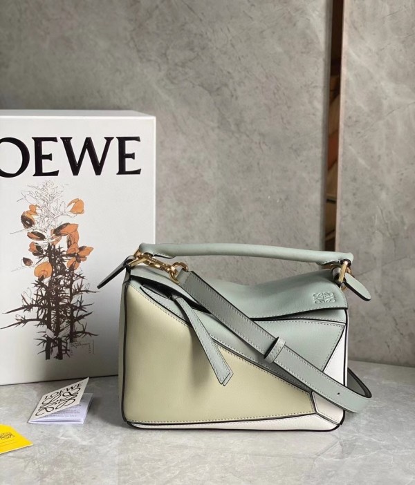 Loewe Puzzle Small Bag In Grey/Cream/White Calfskin