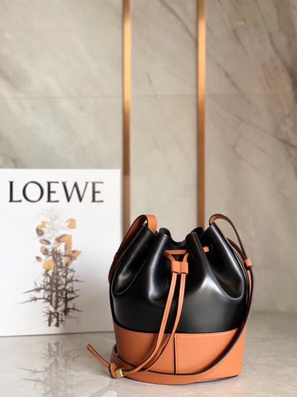 Loewe Small Balloon Bucket Bag In Black/Tan Calfskin