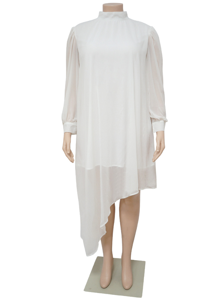 Long Sleeve Chiffon Dresses Plus Size 3XL 4XL Women Loose Oversized White Irregular Office Work Casual Outfits for Ladies