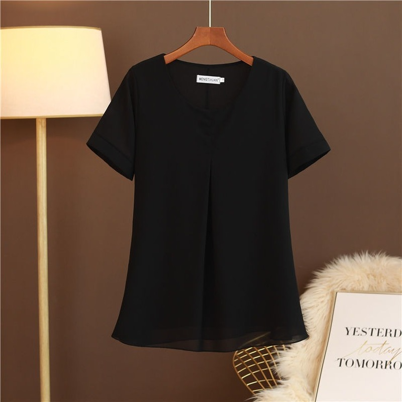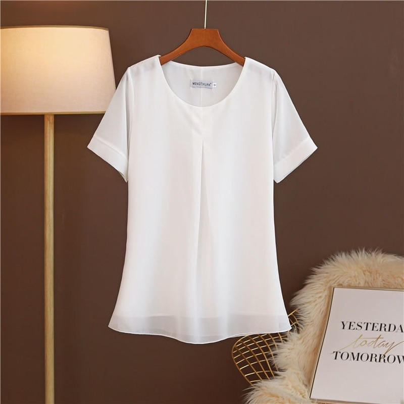 MOYISU Women Blouse Plus Size 6XL Summer Casual O-Neck Short Sleeve Chiffon Shirts FemaleTops