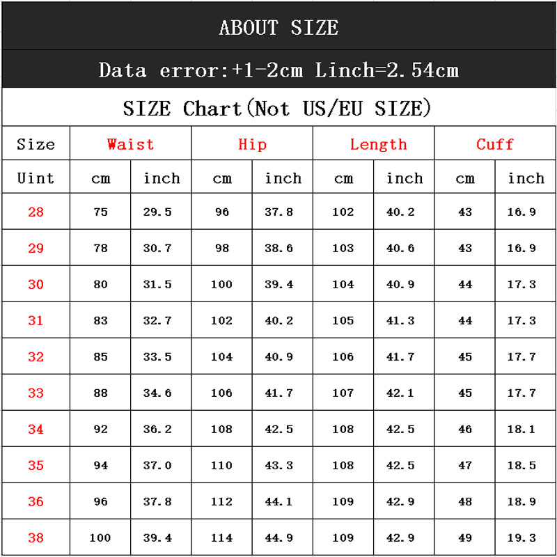 Size | Waist | Hip | Length | Cuff | ||||