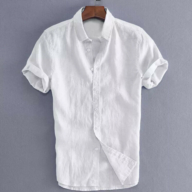 Men's Shirts Linen Short Sleeve Summer Solid Shirts Casual Loose Turn-down Collar Blouse Male Breathable Shirt Chemises homme
