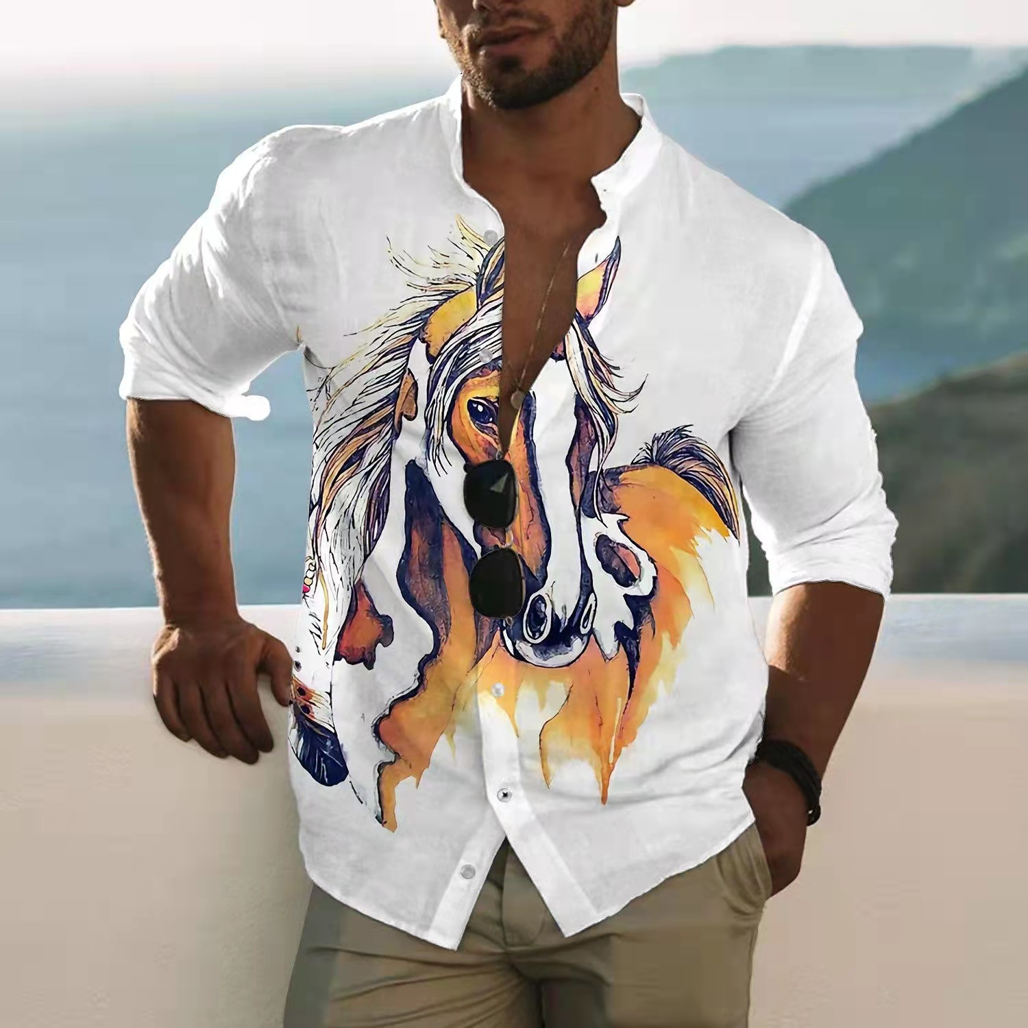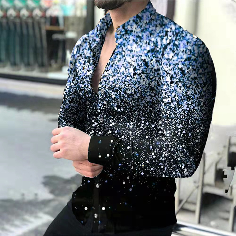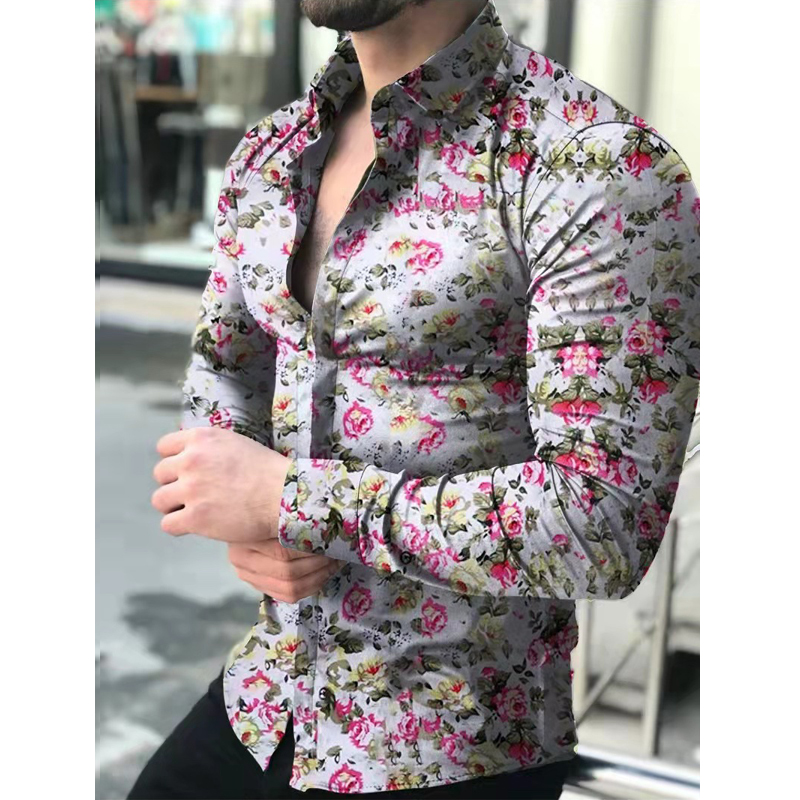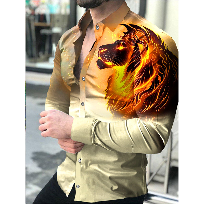 Men's Slim Shirts Spring Autumn Casual Lapel Street Animal 3D Printing Long Sleeve Oversized Shirts Men's Tops
